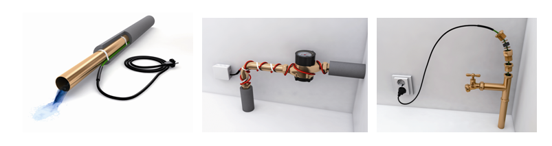 ENSTO—MT管道溫水系統 戶(hù)內管道電伴熱的目的一般不是防凍,而是管道恒溫(即管道溫水系統)。比如,特別追求生活舒適的用戶(hù),冬天在家時(shí),有的不太接受打開(kāi)水龍頭需要等一會(huì )才能引出來(lái)熱水,他/她們期望在剛開(kāi)始流出來(lái)的水就不那么冰冷。 ENSTO—MT管道溫水系統就可以實(shí)現這種愿望。 u 管道溫水系統的適用產(chǎn)品——ENSTO發(fā)熱電纜 ENSTO—MT管道溫水系統的設計選型相對復雜一些,可對應選擇的熱纜種類(lèi)很多。一般管徑大時(shí)多采用Tash單導纜做雙路平行式布設;細管(¢<100mm)可考慮改用Tassu S雙導纜或Thinkit熱纜做纏繞式布設;很短的水管或布設時(shí)可能出現熱纜搭接點(diǎn)的地方,局部選用功率自調控的Optiheat發(fā)熱電纜。有時(shí)候,即插即用的Plug’n 熱纜也是不錯的選擇,很省事。